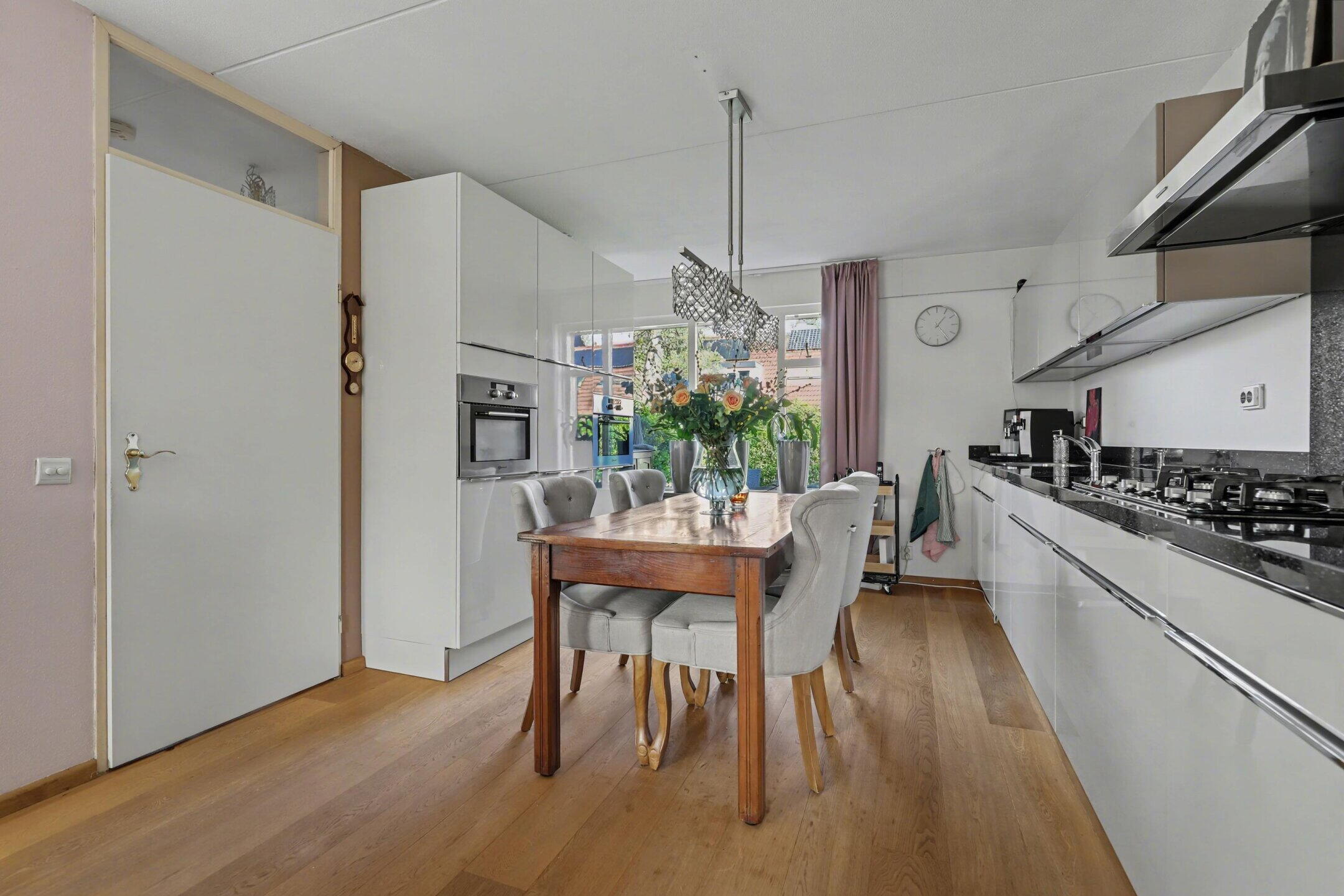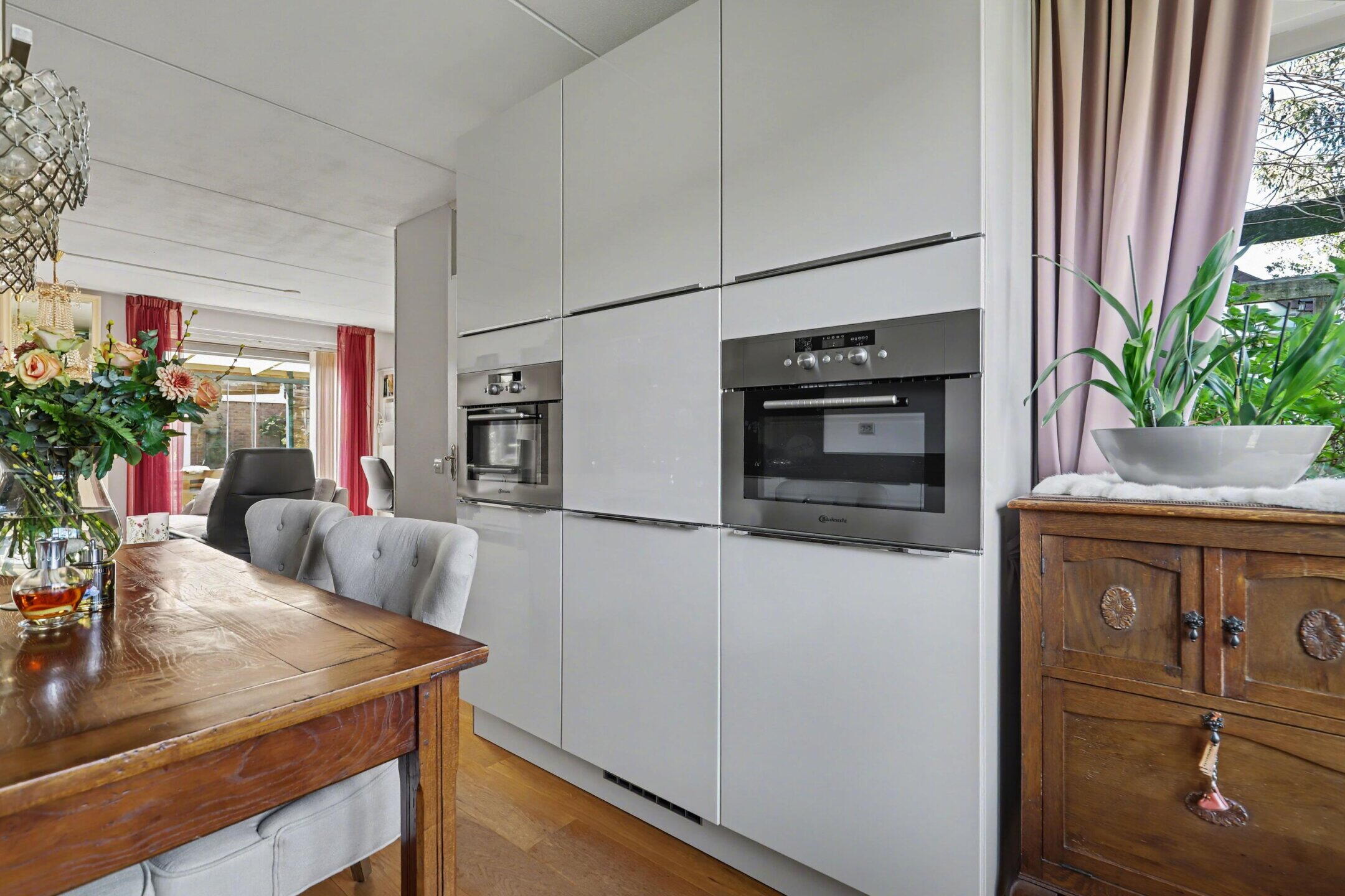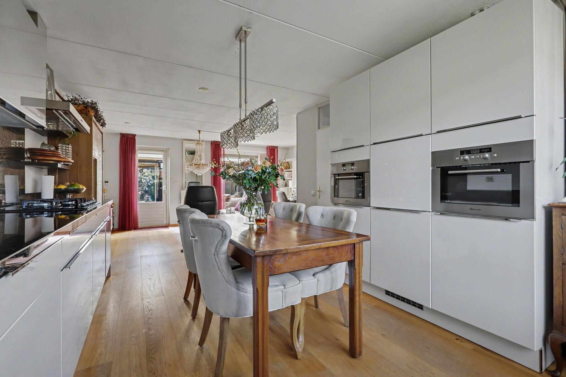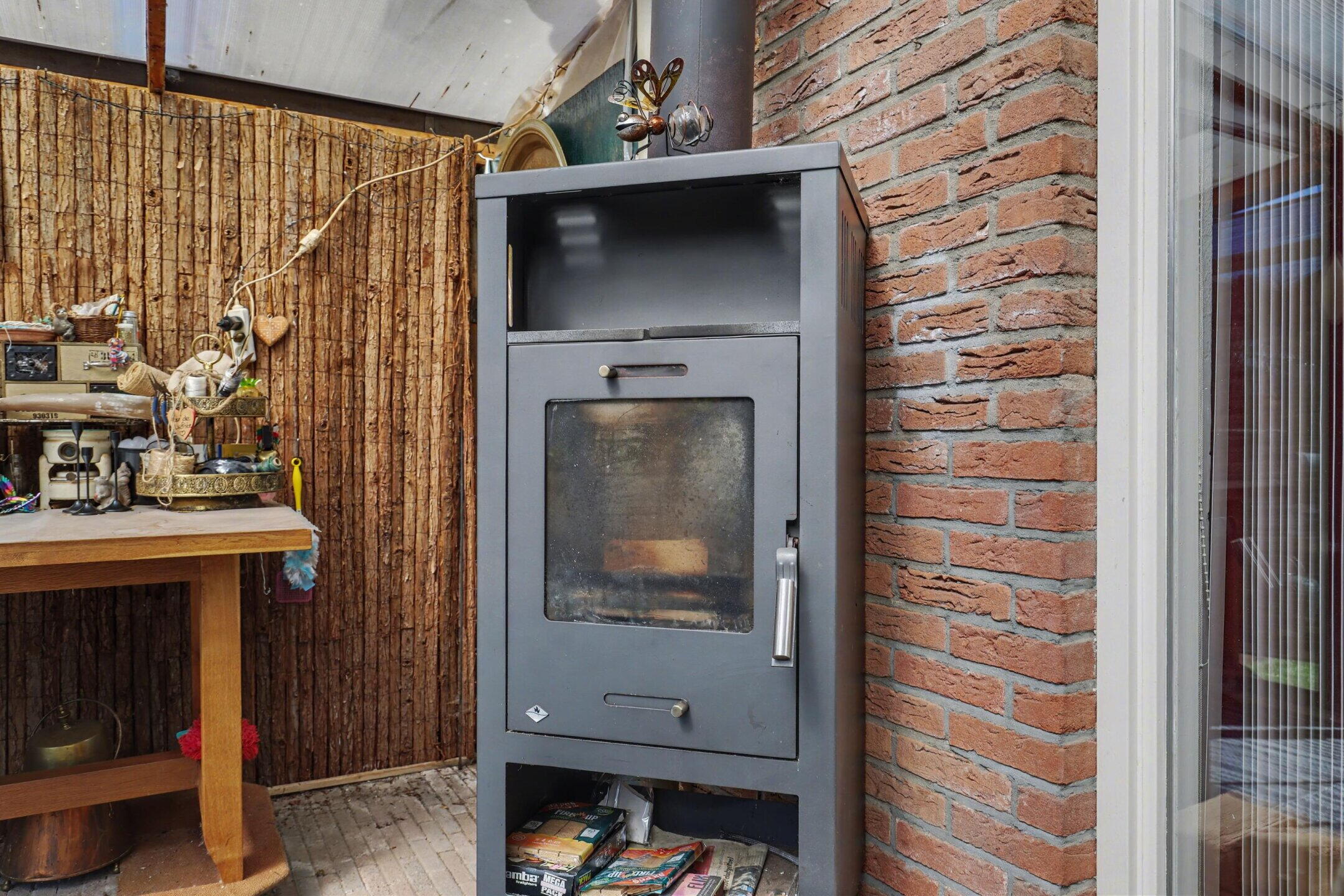 Begane grond: De woonkamer is ruim opgezet en loopt door in de tuinkamer, die als verlengstuk van de leefruimte fungeert. In deze tuinkamer bevindt zich de robuuste houtkachel, die zorgt voor een sfeervol middelpunt. Aan de voorzijde ligt de keuken (2014), praktisch ingedeeld en uitgerust met een oven met stoomfunctie en een relatief jonge vaatwasser (2020). Daarnaast beschikt de begane grond over een provisieruimte en een toilet.