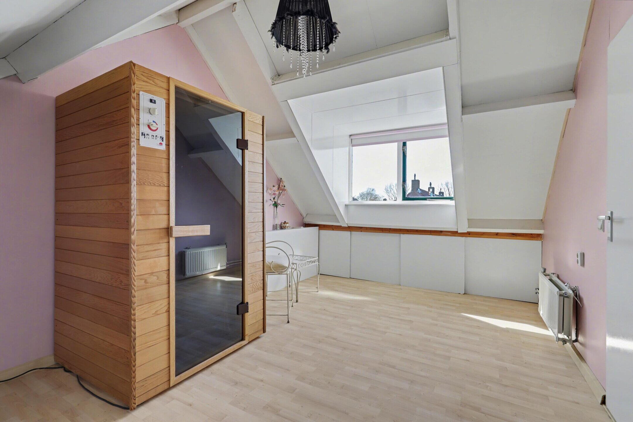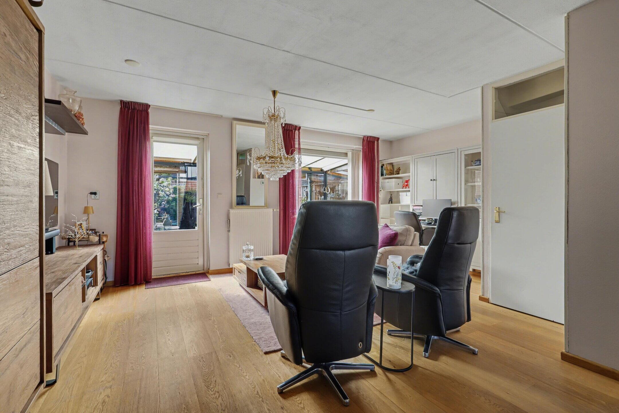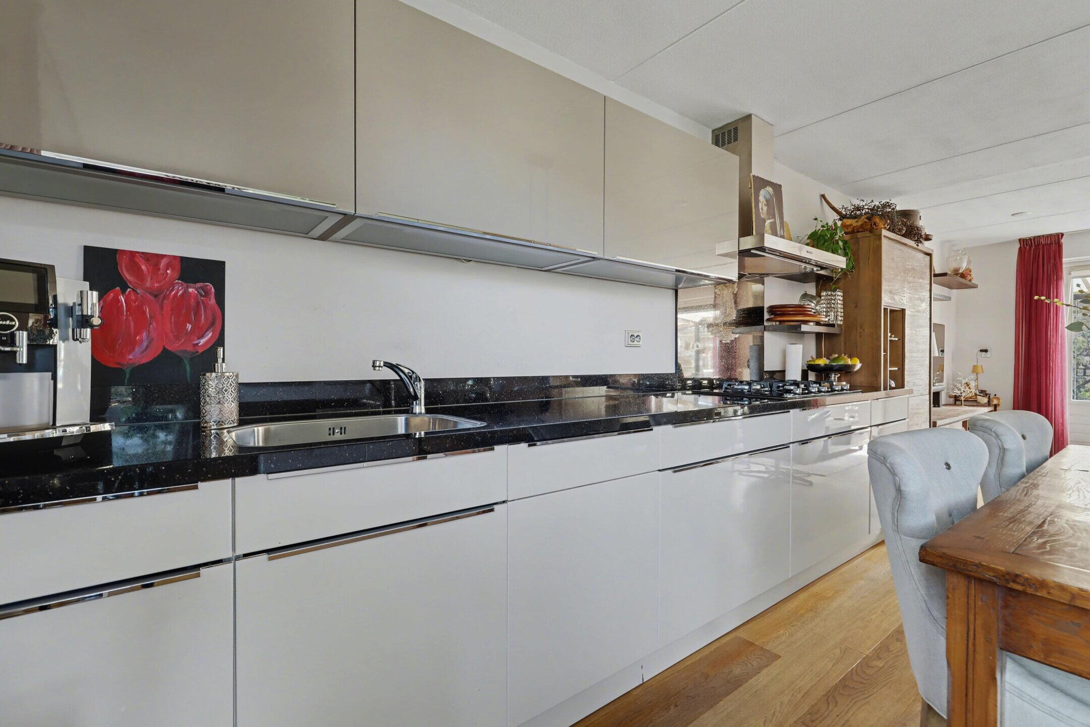 Begane grond: De woonkamer is ruim opgezet en loopt door in de tuinkamer, die als verlengstuk van de leefruimte fungeert. In deze tuinkamer bevindt zich de robuuste houtkachel, die zorgt voor een sfeervol middelpunt. Aan de voorzijde ligt de keuken (2014), praktisch ingedeeld en uitgerust met een oven met stoomfunctie en een relatief jonge vaatwasser (2020). Daarnaast beschikt de begane grond over een provisieruimte en een toilet.