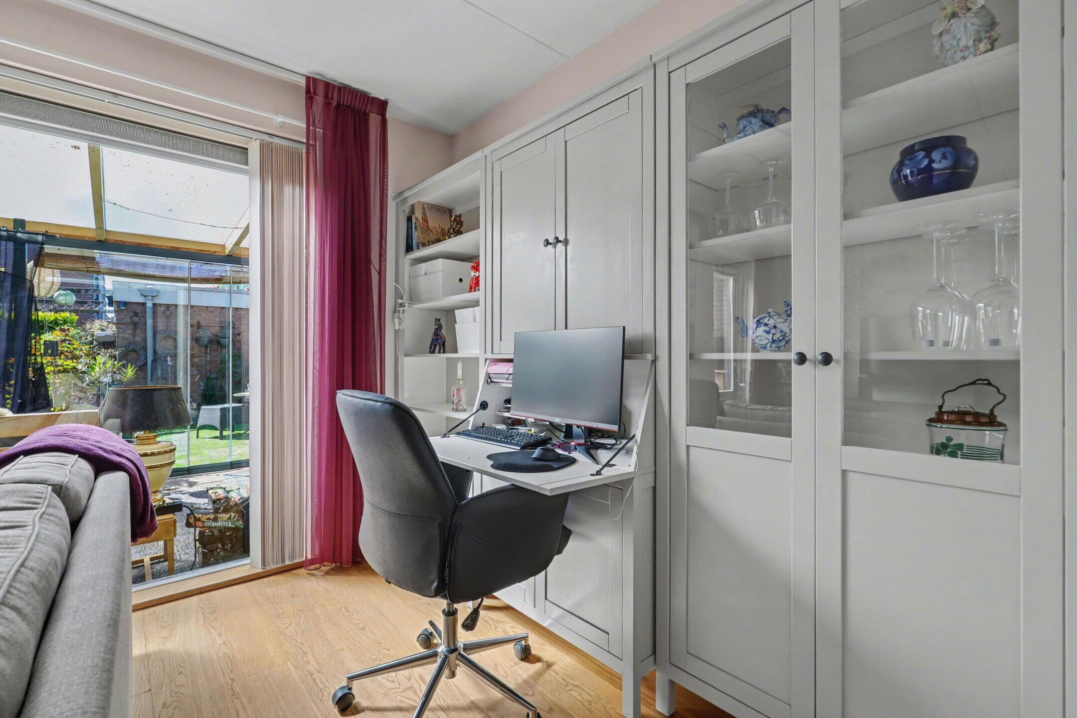 Dit is geen plek voor alleen de zomermaanden. De tuinkamer is een solide, afsluitbaar verlengstuk van de begane grond. Dankzij de kamerbrede glazen schuifwanden die volledig dicht kunnen, creëer je hier een extra woonruimte van ruim 20m² die je 365 dagen per jaar benut. In de winter de warmte van de aangrenzende woonkamer vasthouden, in de zomer zet je de glazen schuifdeuren open om de tuin van circa 104m² direct bij je leefruimte te trekken.