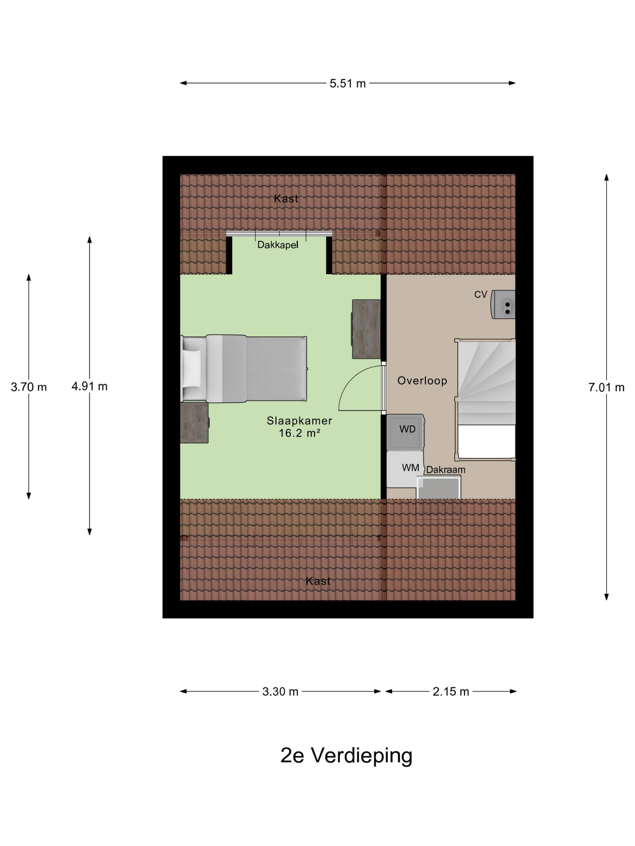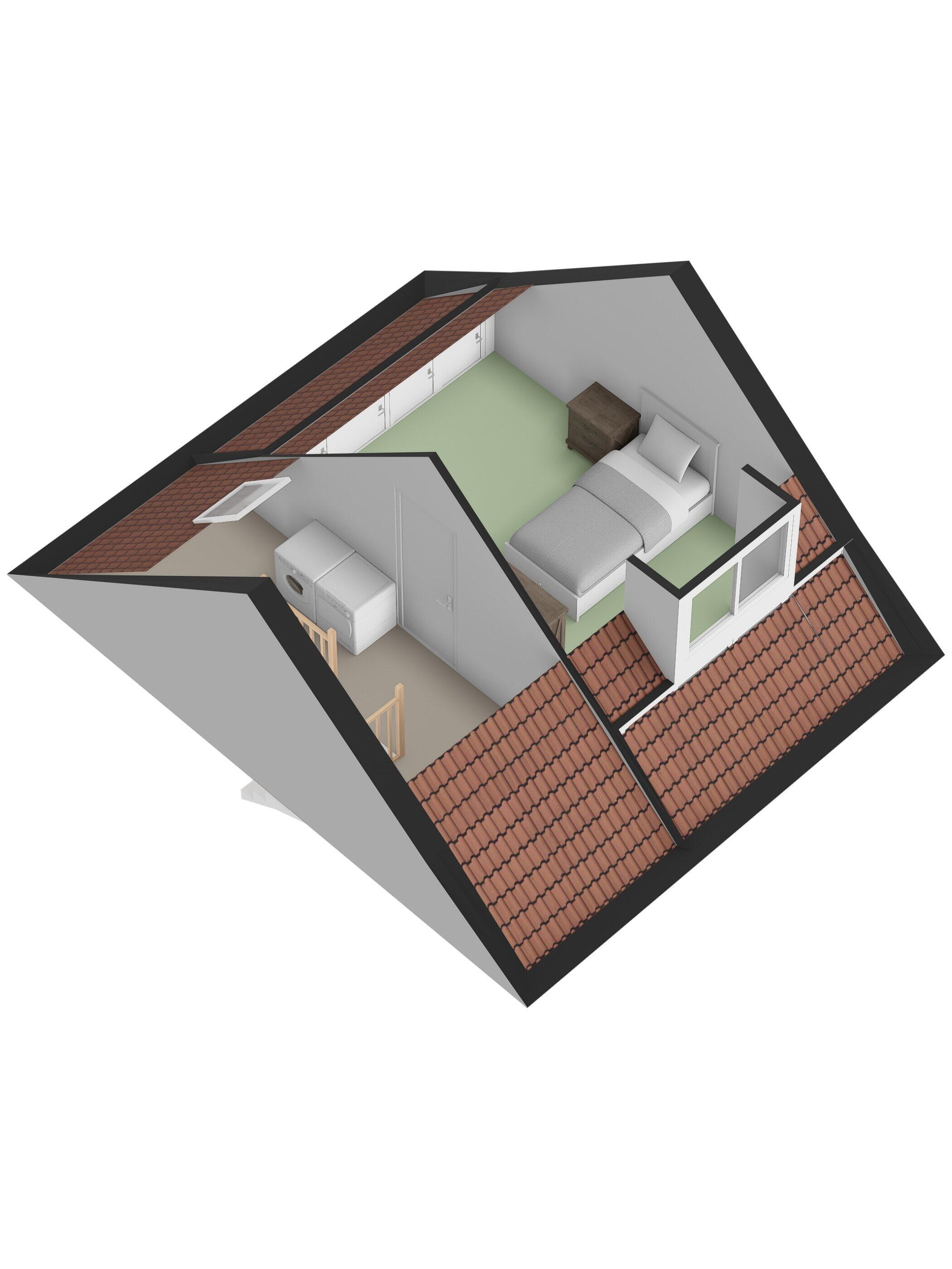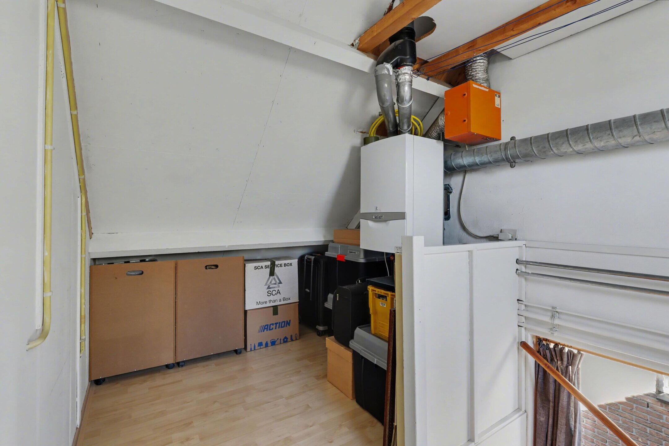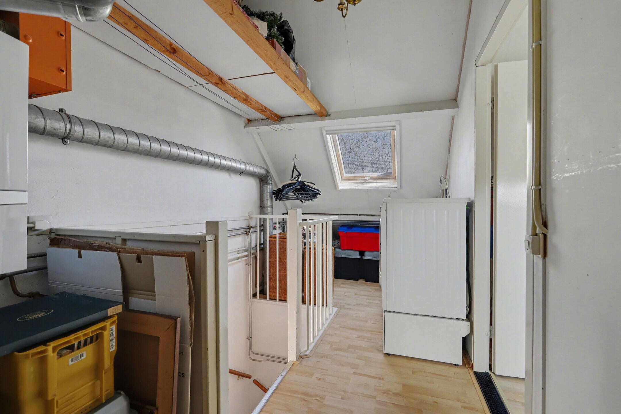 Tweede verdieping: Deze verdieping vormt een volwaardige extra etage en beschikt, mede dankzij de aanwezige dakkapel, over een royale slaapkamer. Op de overloop zorgt een dakraam voor prettig daglicht en bevinden zich de aansluiting voor de cv-installatie evenals de opstelplaats voor de wasmachine en droger.