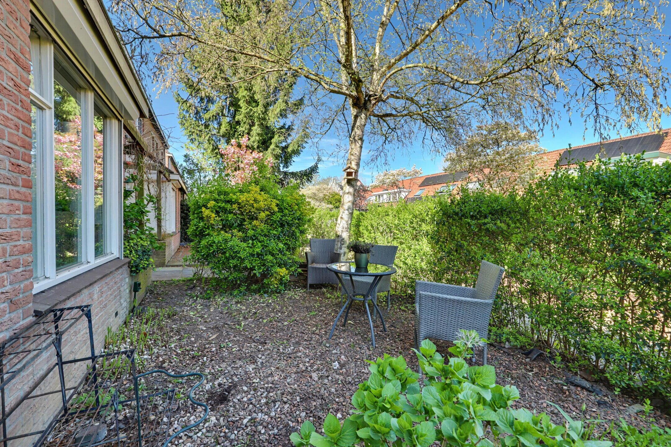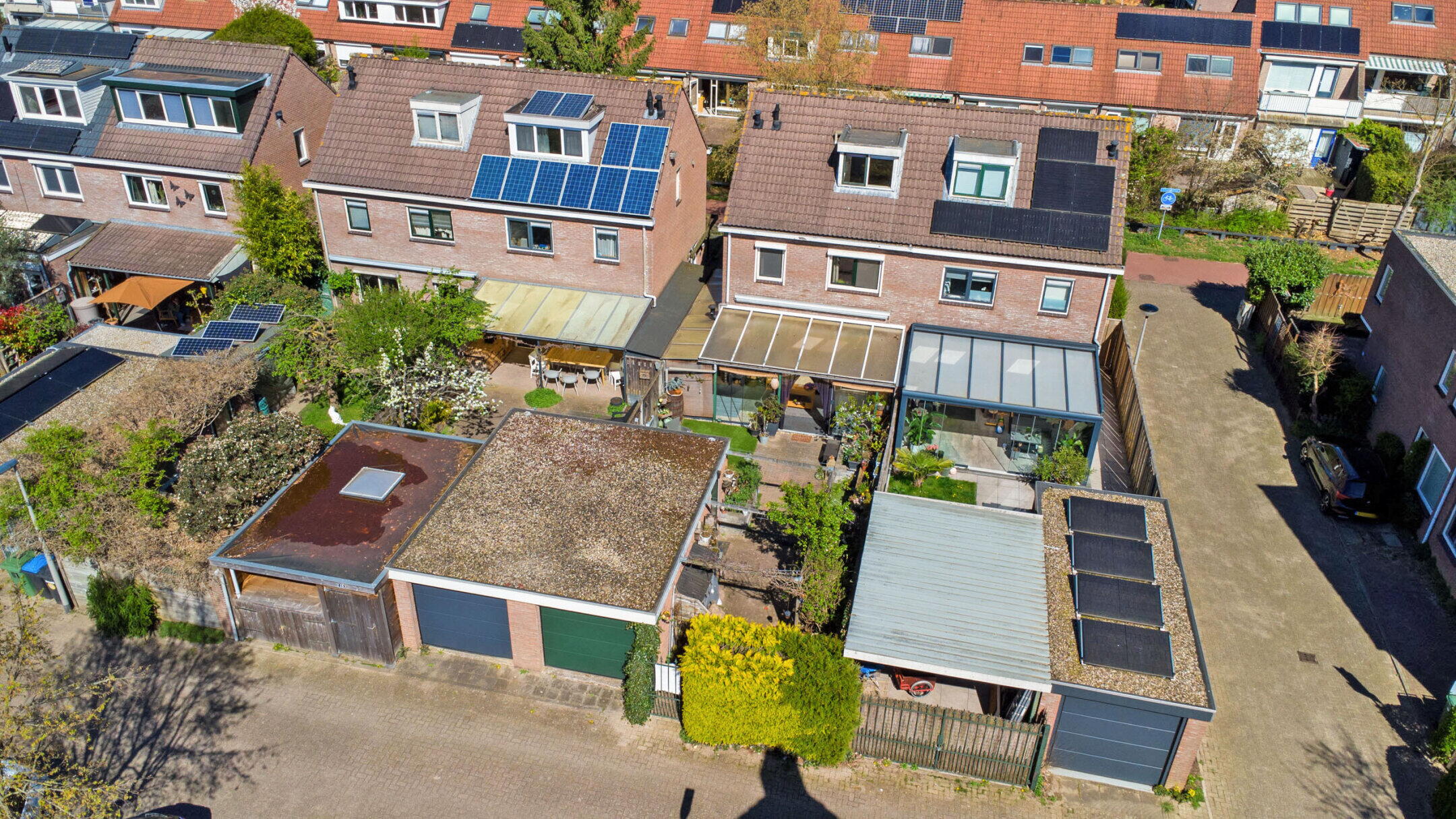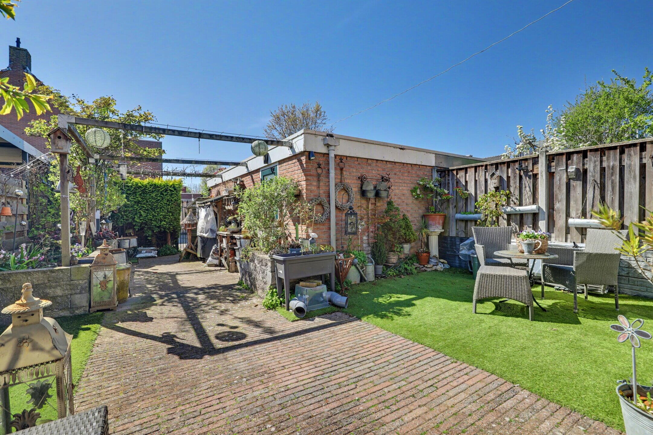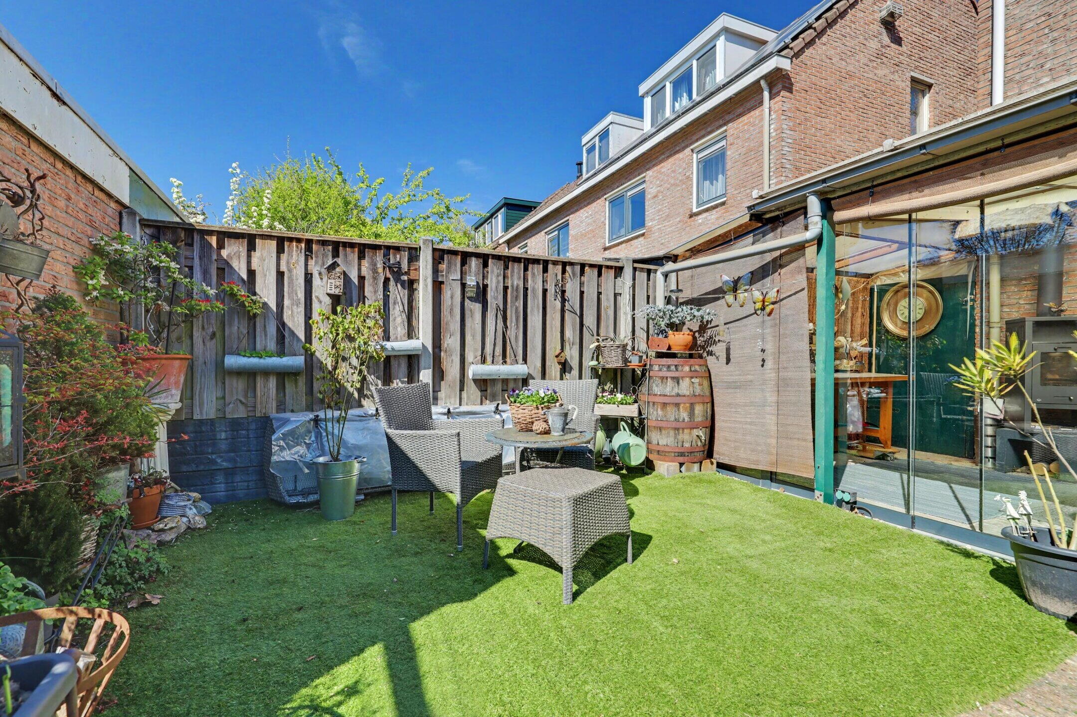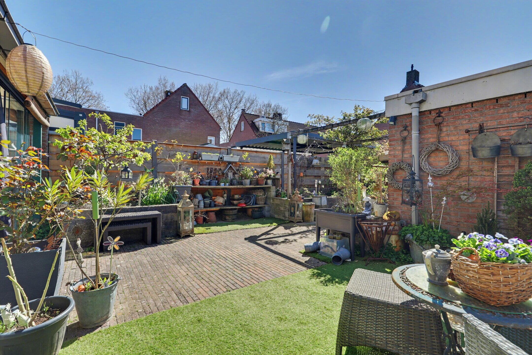 De achtertuin is met een diepte van ruim 14 meter en een oppervlakte van circa 104 m² opvallend ruim. Door de gunstige ligging op het zuidwesten geniet je hier van de middag- en avondzon. De tuin is verzorgd ingericht, beschikt over een achterom en biedt veel privacy ten opzichte van de omliggende bebouwing.